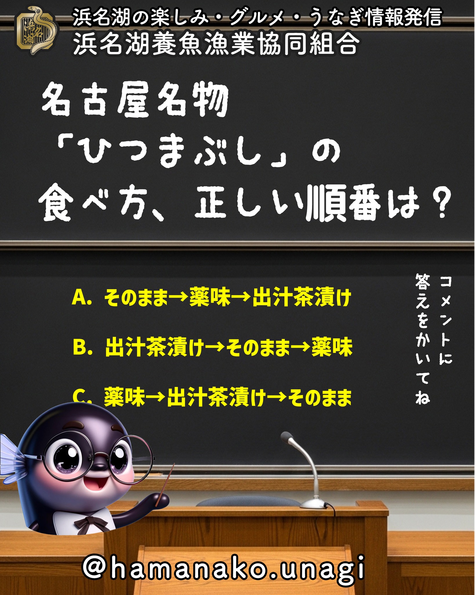 名古屋名物「ひつまぶし」の食べ方、正しい順番は?. A. そのまま→薬味→出汁茶漬け B. 出汁茶漬 […] -